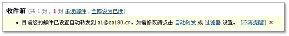您的邮箱被设置了自动转发或者在过滤规则条件中设置转到某个邮箱,则有安全提示及系统邮件提醒,如图所示: